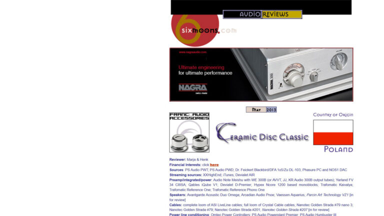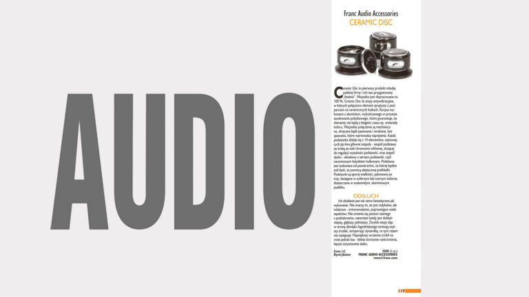 This is the first review of the Ceramic Disc Classic from Franc Audio Accessories, which appeared in the audio press in October 2009 in the Polish magazine Audio. Since then, everything has changed, and the company has begun to gain momentum.