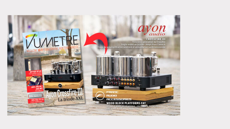 Franc Audio Accessories had the pleasure of appearing on the cover of the French audio magazine – VU METRE No. 21, with the Wood Block Fat Platform during the presentation of the Ayon Audio Crossfire III tube amplifier.